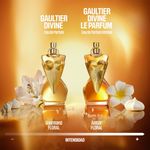 UN AROMA FLORAL AMBARINO INTENSAMENTE DIVINO Se tu misma, divina y sensual, con este eau de parfum aun mas intenso y atrevido que el original. Sus espectaculares lirios y luminosas flores de franchipan desprenden una energia solar deslumbrante. El beso salado caracteristico de Gaultier Divine abraza la calida opulencia del benjui y la suave indulgencia de un irresistible merengue. Te coronaras con una adiccion tan seductora como radiante.