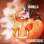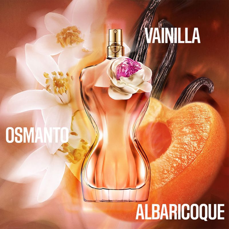 La Belle es ardiente y majestuosa. En edición limitada, La Belle Flower Edition te hechiza hasta hacerte perder la cabeza. En medio de una naturaleza tentadora, se deja embriagar por la fascinante belleza de las flores. ¡Éxtasis! Flores deslumbrantes y decadentes que exhalan su fragancia más delicada. Desde lo alto de sus curvas desnudas, nuestra indomable musa lo revela todo. O casi todo. Sobre su hombro, una exuberante flor joya. Como una sensual obra de arte. A su alrededor, una sensual estela floral de suculento albaricoque, realzada por la vainilla, donde florecen absolutos florales que le confieren toda su voluptuosidad y la hacen infinitamente deseable.